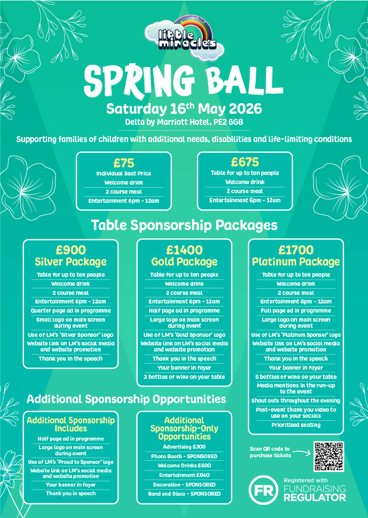 Join us for a stylish and uplifting evening at our Little Miracles Spring Ball 2026 – a black-tie event dedicated to raising vital funds for local families of children with additional needs, disabilities and life-limiting conditions.