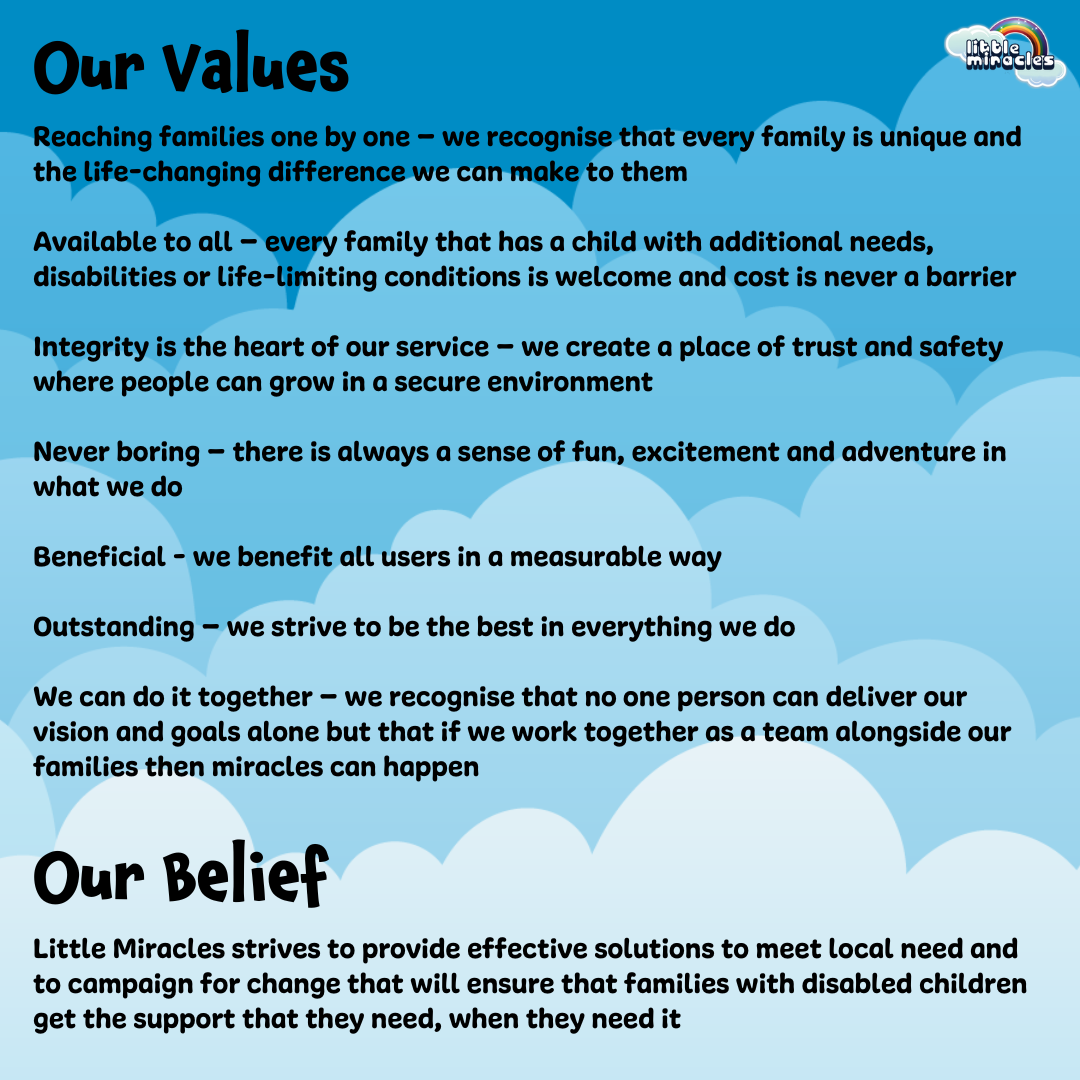 In the UK there are over one million disabled children under the age of 16. This is approximately one child in every twenty. Yet the majority of families we work with report feeling like they are alone on their journey. Little Miracles exists to reduce this isolation and ensure that carers get the care they need to fully support their families. Many families see Little Miracles as a lifeline.